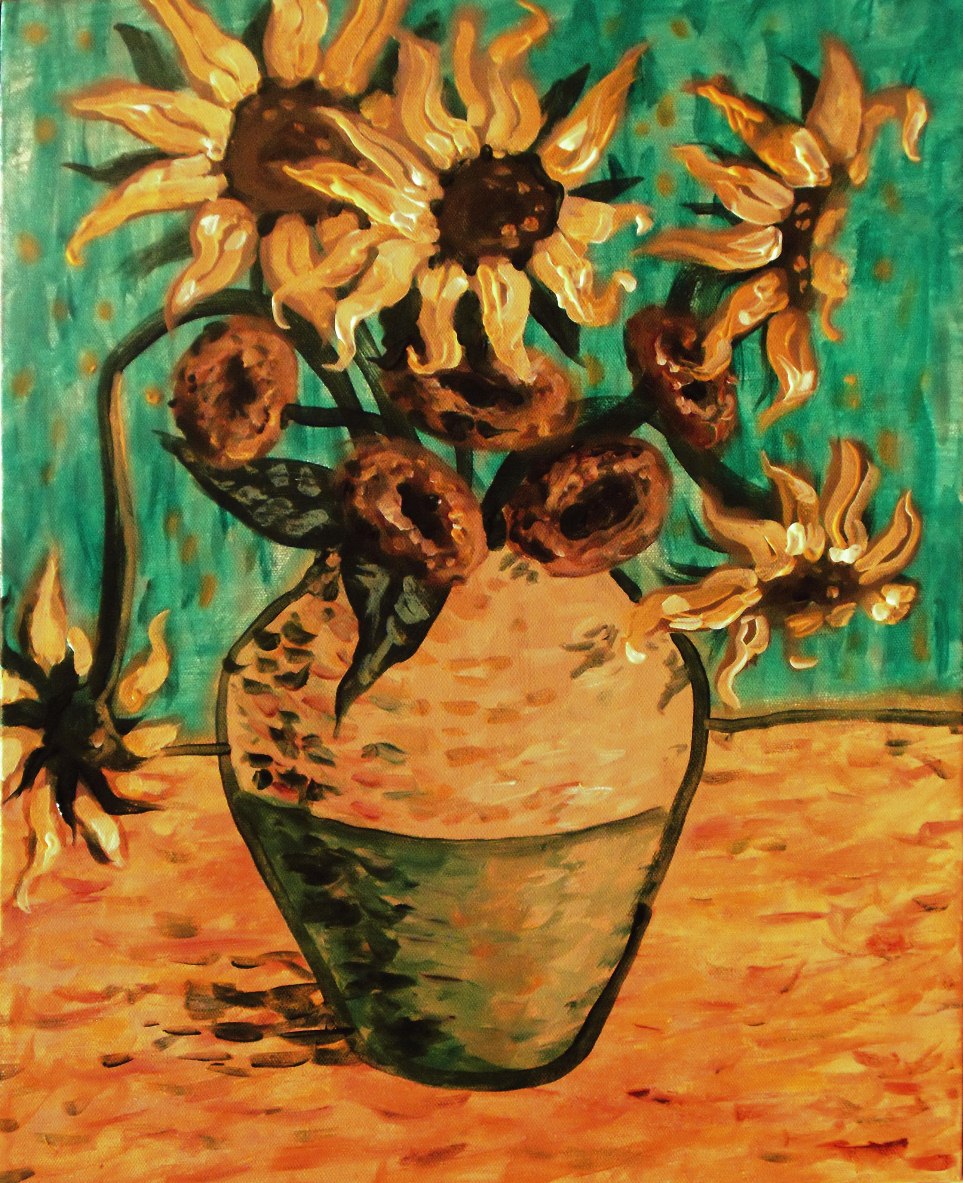 Tonight, I taught a couple art classes on the paintings above -- these ones are the canvases I painted while teaching. I had the best students ever and had a blast painting these. With the top one, I designed a class based not around a particular image but around a particular style. We wanted to make a class for high school age kids that involves street art sensibilities and collage-making. The bottom one, technically, is a copy of a copy. I don't remember ever seeing the original but this is based on a Van Gogh copy created by my art director -- by the way, I've been a huge Van Gogh nerd lately every since seeing the "Becoming Van Gogh" show at Denver Art Museum! His paintings make me so happy. And if you're ever anywhere near Denver or Colorado Springs and would like to take one of these painting classes or a similar one, just check out youniquexpressions.com and register online. Till next time, stay awesome. And stay tuned for some updates on my e-book illustration project, "Mary Mary Quite." Though it's coming along slowly, I'm really excited about the new illustrations. Talk to you later. Hasta la pasta.